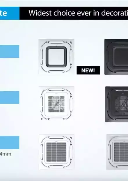 DAIKIN inverter compressors constantly adjust their speed according to the current need. Fewer energy-consuming starts and stops result in reduced energy consumption (up to 30%) and more stable temperatures. Combining the cartridge with outdoor units with R-32 Bluevolution inverter technology reduces the harmful impact on the environment by 68% compared to R-410A, which directly leads to lower energy consumption thanks to its high energy efficiency and has up to 16 % less refrigerant. They guarantee efficient operation in harsh winter conditions down to -20oC and fast response speed on the hottest days. These ceiling indoor units run so quietly you can hear a whisper. They have 2 intelligent sensors - floor and presence, they prevent excessively strong horizontal air supply against getting stains on the ceiling. The round cassette has the lowest mounting height on the market: 214 mm for class 20-63 and with the widest choice of decorative panels: designer panels in white (RAL9010) and black (RAL9005) and standard panels in white (RAL9010 ) with gray blinds or pure white, which also have the option of a self-cleaning filter.