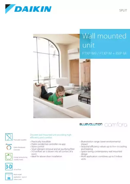 Air conditioner for the modern way of life, with energy saving mode and silver filter, for better air quality in your home and for comfort of the air flow. Virtually silent and with the optional titanium apatite filter, the Comfora is ideal for bedrooms.