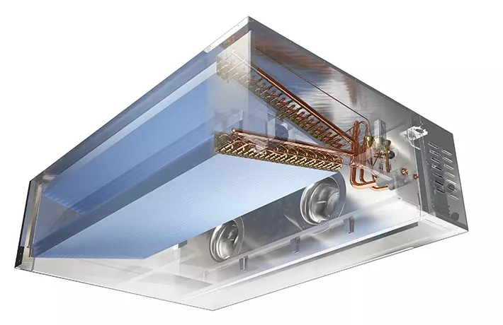 Малкият размер увеличава максимално използваемата площ на пода (600x550 мм за 5HP). Лесно монтирайте устройството в складово помещение или заден офис .Въртящата се кутия за превключване осигурява лесен достъп до всички части.Оптимизирана форма за по-висок въздушен поток и статично налягане, което води до по-висока ефективност .Височината му е само 400 мм, което позволява лесен монтаж в окачени тавани, за да се спести търговско пространство. Революционен дизайн на пазара на VRF системи.