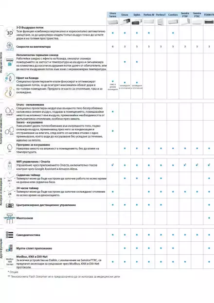 - Ускорено загряване - зададената температура се достига с 14% по-бързо, отколкото при обикновен климатик, загрявайки помещението по-бързо, когато е необходимо и много други технологични иновации за постигане на висока енергийна ефективност А+++ при максимално намален ПГЗ на външите тела.