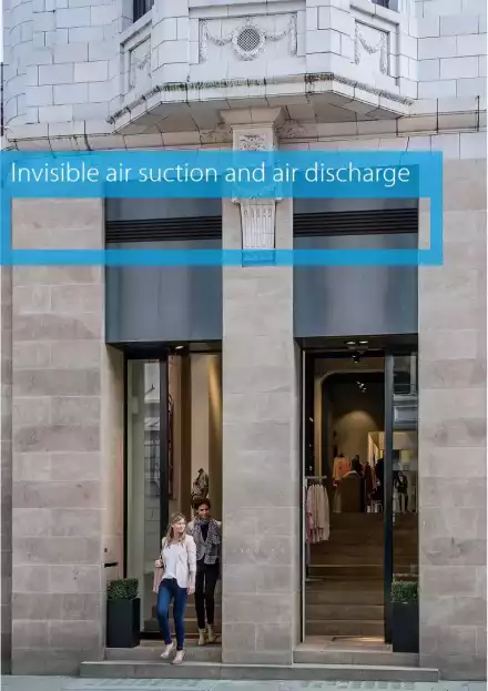 VRV IV i-серия е практически невидима , а ниският ѝ работен шум я прави почти незабележима. Подходяща за гъсто населени райони, като например центровете на градовете, компресорът не е по-шумен от хладилник, а топлообменникът е незабележим в градска среда. С помощта на декоративни елементи можете напълно да скриете решетките или да ги интегрирате в дизайна на сградата, така че инсталацията ви да е невидима.
