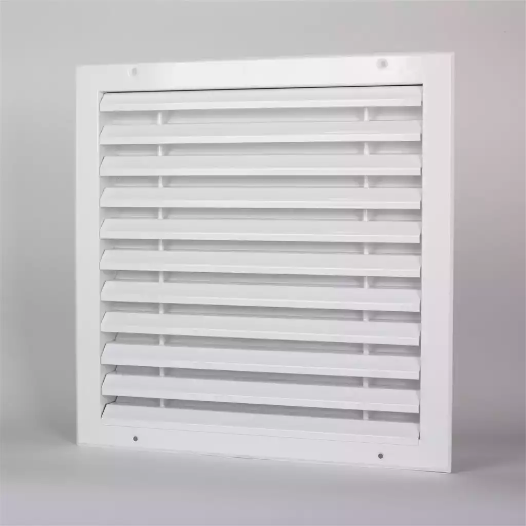 Неподвижна Жалузийна Решетка Тип 2НЖР Тип 2 - стандартна фасадна решетка за монтаж на фасада, от която вентилационните/климатичните системи засмукват свеж въздух или изхвърлят отработен въздух. В сравнение с НЖР тип 1, тази е с по-голямо разстояние между ламерите, правейки я по-малко податлива на затапване, както и увеличавайки светлото й сечение... ![Неподвижна Жалузийна Решетка Тип 2]()